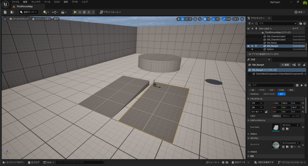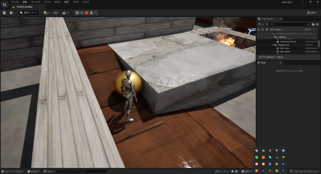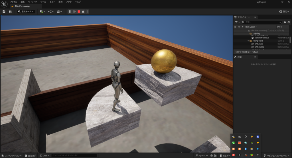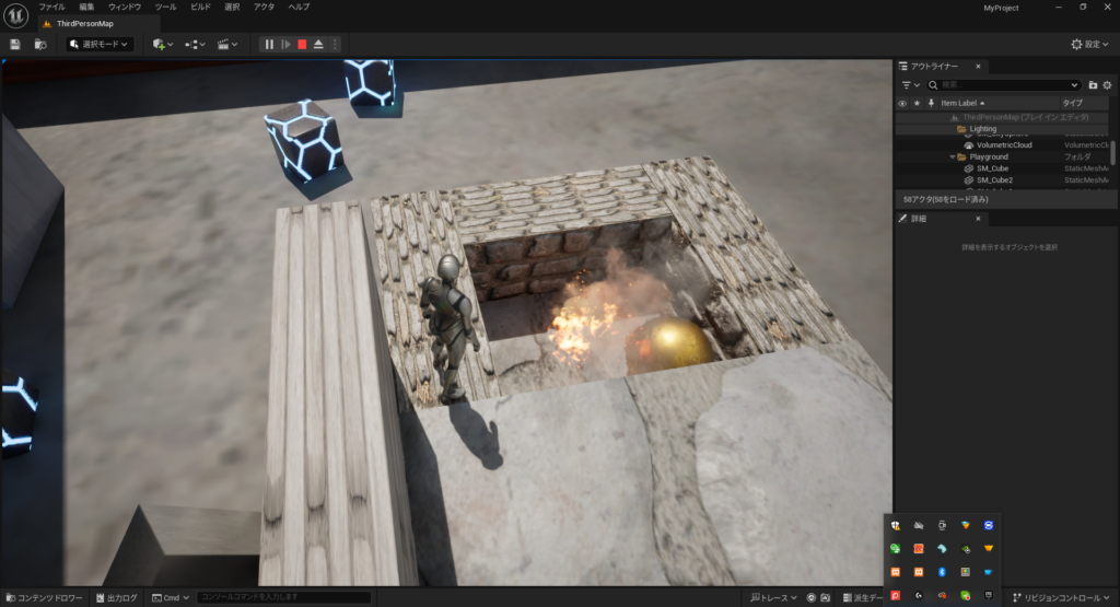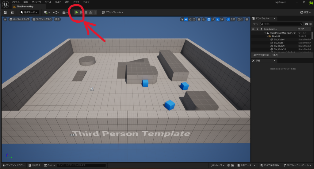 アンリアルエンジンを起動してゲーム、サードパーソン、作成を選択します。